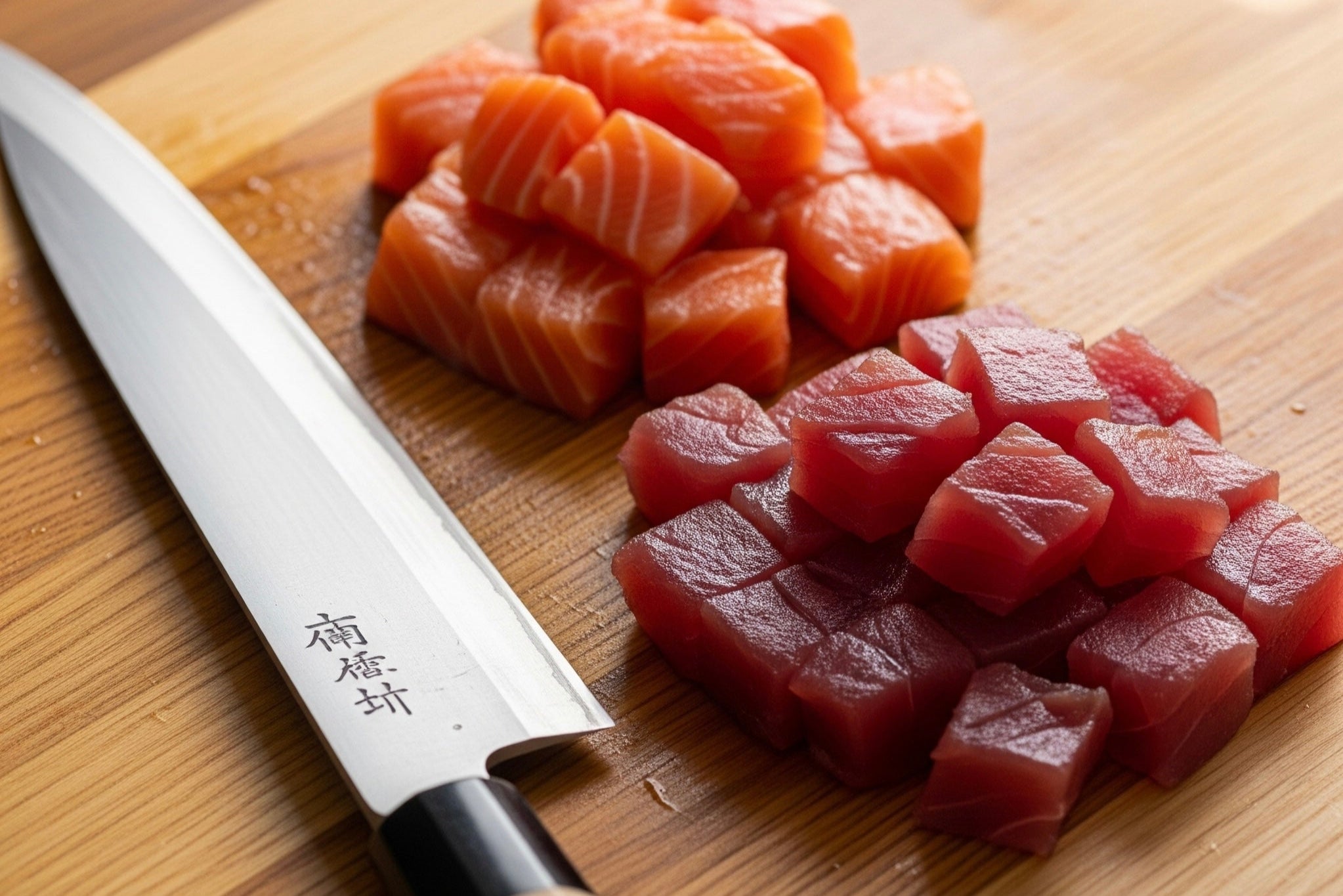 Human-grade Tuna and Salmon are hand-sliced with precision, then delicately handled to preserve their natural flavor — culminating in a perfectly crisp, flavorful finish.